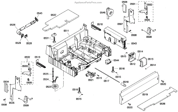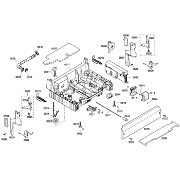 The Junction Box Cover is an OEM part for Bosch dishwashers. Located at the rear of the appliance, the junction box houses connections to the power supply and control board wiring. The junction box cover protects these internal electronic parts.