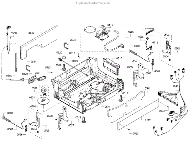 The Base Panel is an OEM part for Bosch dishwashers. It forms the floor structure inside the dishwasher tub on which racks and components sit. Symptoms of a problematic base panel include: