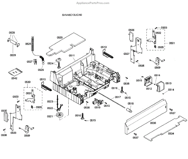 The Base Panel is an OEM part for Bosch dishwashers. It serves as a protective cover for the bottom of the dishwasher, shielding internal components from debris, moisture, and damage while also contributing to the appliance's structural stability.