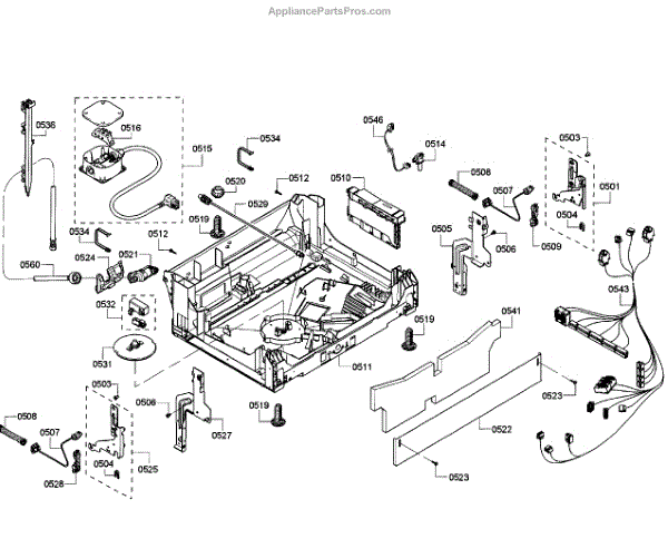 The Base Panel is an OEM part for Bosch dishwashers. It forms the floor structure inside the dishwasher tub on which racks and components sit. Symptoms of a problematic base panel include: