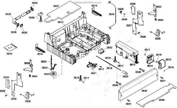 The Base Panel is an OEM part for Bosch dishwashers. It serves as a protective cover for the bottom of the dishwasher, shielding internal components from debris, moisture, and damage while also contributing to the appliance's structural stability.