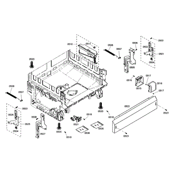 The Junction Box Cover is an OEM part for Bosch dishwashers. Located at the rear of the appliance, the junction box houses connections to the power supply and control board wiring. The junction box cover protects these internal electronic parts.