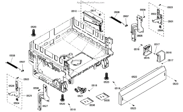 The Base Panel is an OEM part for Bosch dishwashers. It serves as a protective cover for the bottom of the dishwasher, shielding internal components from debris, moisture, and damage while also contributing to the appliance's structural stability.