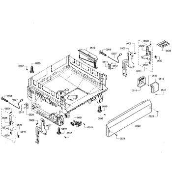 The Base Panel is an OEM part for Bosch dishwashers. It serves as a protective cover for the bottom of the dishwasher, shielding internal components from debris, moisture, and damage while also contributing to the appliance's structural stability.
