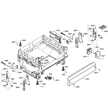 The Base Panel is an OEM part for Bosch dishwashers. It serves as a protective cover for the bottom of the dishwasher, shielding internal components from debris, moisture, and damage while also contributing to the appliance's structural stability.