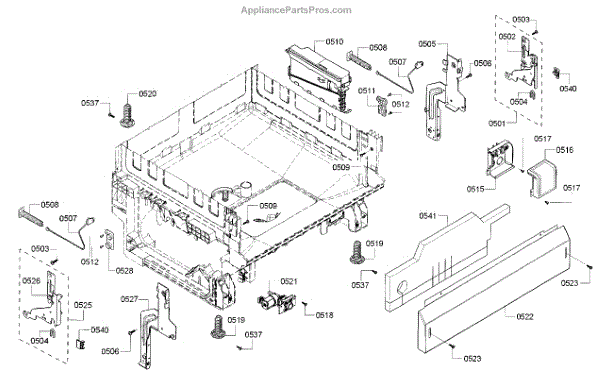The Base Panel is an OEM part for Bosch dishwashers. It serves as a protective cover for the bottom of the dishwasher, shielding internal components from debris, moisture, and damage while also contributing to the appliance's structural stability.