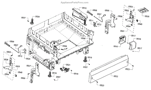 The Base Panel is an OEM part for Bosch dishwashers. It serves as a protective cover for the bottom of the dishwasher, shielding internal components from debris, moisture, and damage while also contributing to the appliance's structural stability.