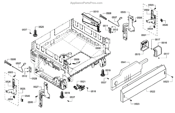 The Base Panel is an OEM part for Bosch dishwashers. It serves as a protective cover for the bottom of the dishwasher, shielding internal components from debris, moisture, and damage while also contributing to the appliance's structural stability.