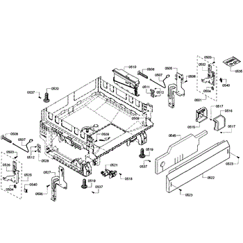 The Base Panel is an OEM part for Bosch dishwashers. It serves as a protective cover for the bottom of the dishwasher, shielding internal components from debris, moisture, and damage while also contributing to the appliance's structural stability.
