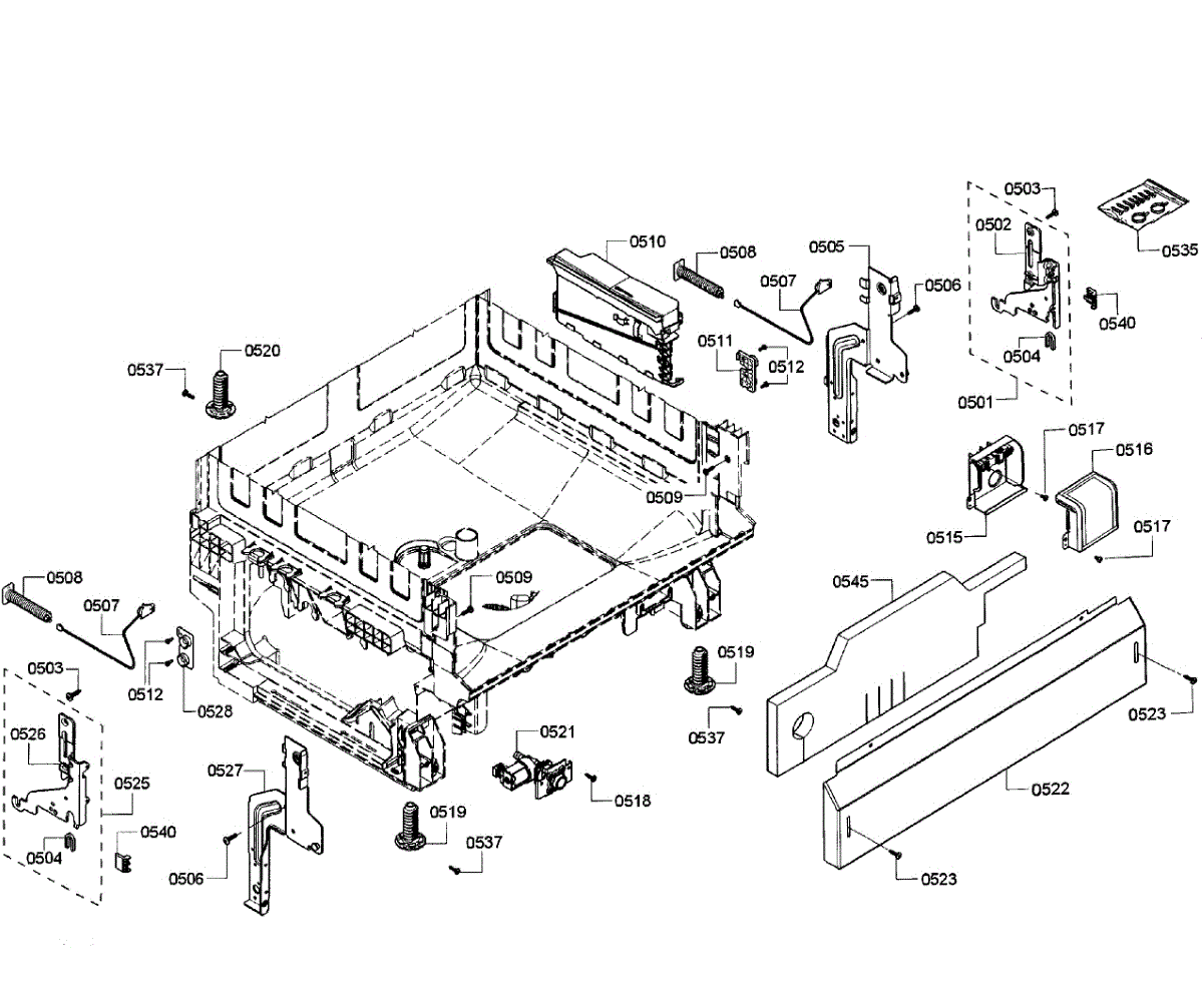 The Support is an OEM part for Bosch dishwashers. This part supports the door hinges, ensuring that the dishwasher door opens and closes smoothly and securely. The hinge support is vital for maintaining the alignment of the door, preventing stress on other components, and ensuring a proper seal during operation to avoid leaks.
