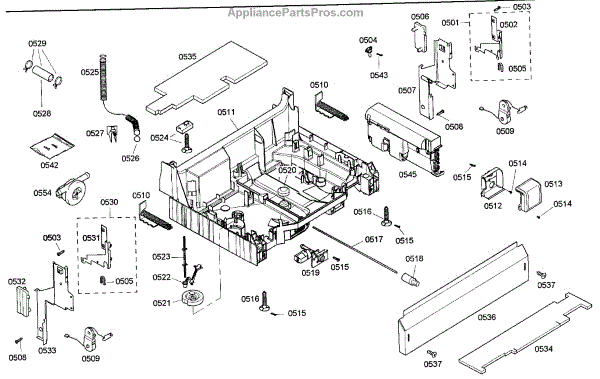 The Base Panel is an OEM part for Bosch dishwashers. It serves as a protective cover for the bottom of the dishwasher, shielding internal components from debris, moisture, and damage while also contributing to the appliance's structural stability.