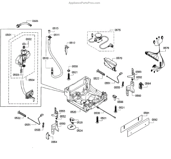 The Power Cord is an OEM replacement part for Bosch dishwashers. It supplies electrical current that allows the dishwasher to properly perform cycles. Located at the rear of the appliance, it plugs into a standard three-prong outlet. Causes for power cord replacement include cracking, splitting, or breaks in the protective insulation over time from repeated bending and stress. Symptoms of a faulty power cord include: