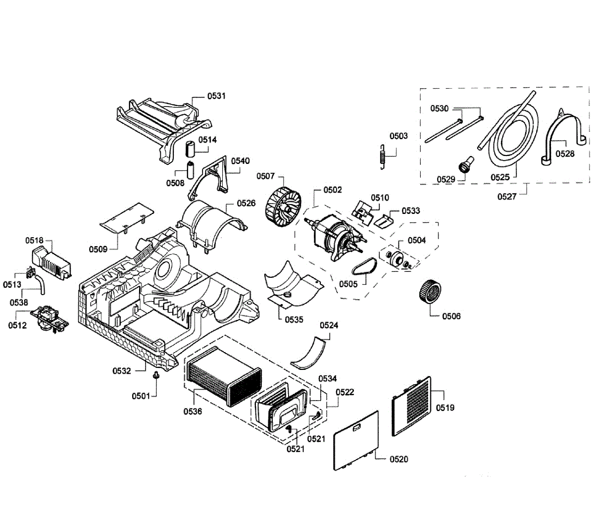 Fix poor drying or loud noise with this dryer blower fan housing. Restores airflow through the drum and vent system. Moderate DIY repair for many models.