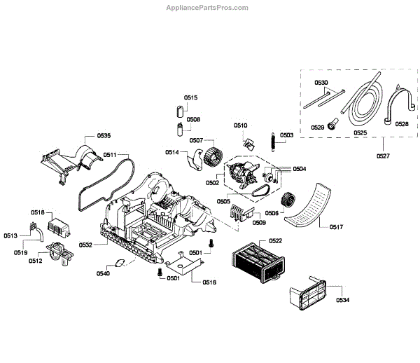 This part is a dryer motor assembly. It is located on the back of the appliance. The part is responsible for turning the dryer blower and drum. Make sure the dryer is free of lint and regularly clean the dryer vents to keep the motor assembly in good shape. If the motor assembly is damaged or malfunctioning, it may cause the dryer to hum. The dryer may also have difficulty spinning.If the motor assembly has gone bad, it should be replaced. Unplug the dryer and consider work gloves to protect the hands. Remove the lint screen and housing, the lid, and the wire harness plug. Take off the front panel and unhook it from the hinges. Remove the pulley and belt to reach the drive motor. Take out the clamps and pull the motor assembly out. Place the new one in the same location and reassemble the dryer.Designed for dryers manufactured by Bosch, this motor assembly is sold individually. It is a genuine OEM replacement part that has been directly obtained from the manufacturer.
