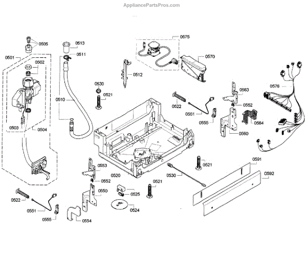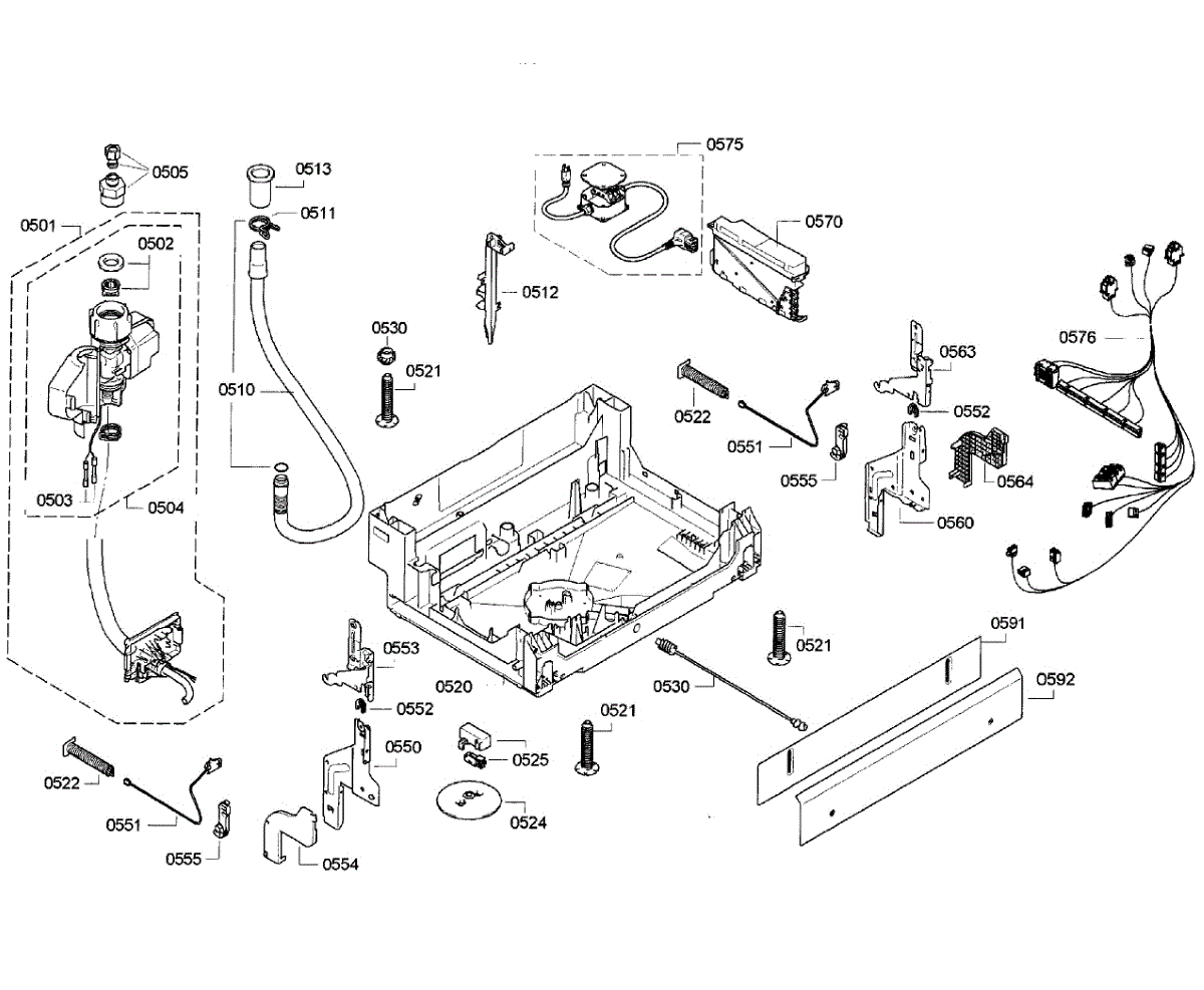 Dishwasher bottom case base assembly forms the lower enclosure protecting internal components. Replace if cracked, broken, or damaged to restore stability.