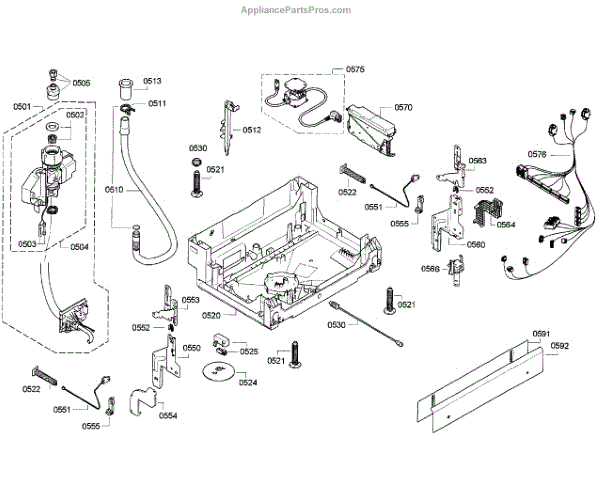 The Base Panel is an OEM replacement part for Bosch dishwashers. It serves as the protective front cover for the dishwasher's base, hiding the internal parts and providing a finished look to your appliance.