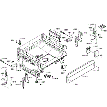 The Junction Box Cover is an OEM part for Bosch dishwashers. Located at the rear of the appliance, the junction box houses connections to the power supply and control board wiring. The junction box cover protects these internal electronic parts.