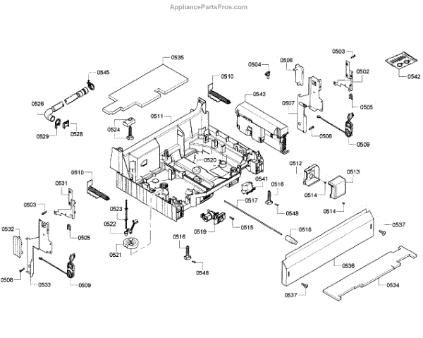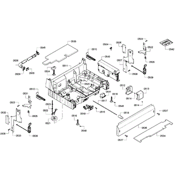 The Base Panel is an OEM part for Bosch dishwashers. It serves as a protective cover for the bottom of the dishwasher, shielding internal components from debris, moisture, and damage while also contributing to the appliance's structural stability.