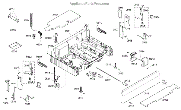 The Base Panel is an OEM part for Bosch dishwashers. It serves as a protective cover for the bottom of the dishwasher, shielding internal components from debris, moisture, and damage while also contributing to the appliance's structural stability.