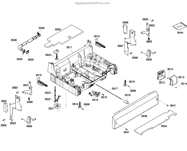 The Base Panel is an OEM part for Bosch dishwashers. It serves as a protective cover for the bottom of the dishwasher, shielding internal components from debris, moisture, and damage while also contributing to the appliance's structural stability.