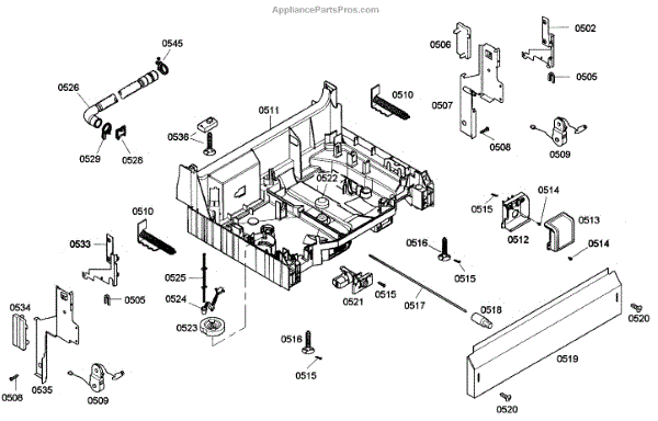 The Base Panel is an OEM part for Bosch dishwashers. It serves as a protective cover for the bottom of the dishwasher, shielding internal components from debris, moisture, and damage while also contributing to the appliance's structural stability.