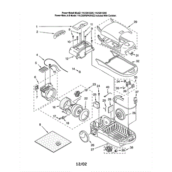 Parts for Kenmore 116.22612205 (11622612205, 116 22612205): Base / Body / Dust Box Parts
