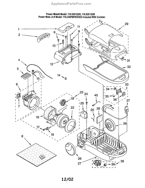 Parts for Kenmore 116.22613205 (11622613205, 116 22613205): Base / Body / Dust Box Parts