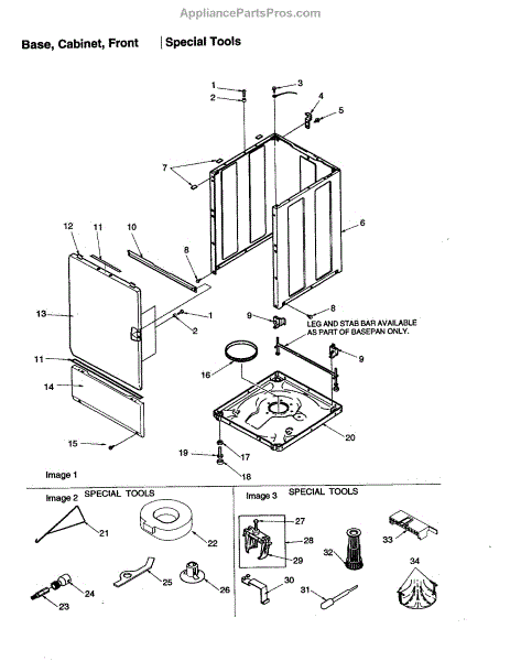 Parts for Amana DLW330RAW-PDLW330RAW: Base, Cabinet, Front / Special Tools Parts