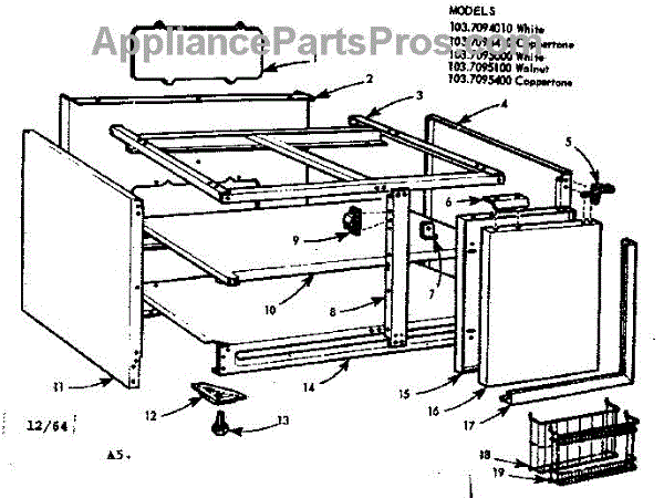 Parts for Kenmore 103.7094410 (1037094410, 103 7094410): 39" Base Cabinet Parts