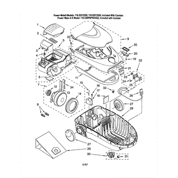 Parts for Kenmore 116.22513205 (11622513205, 116 22513205): Base / Canopy / Motor, Fan Parts