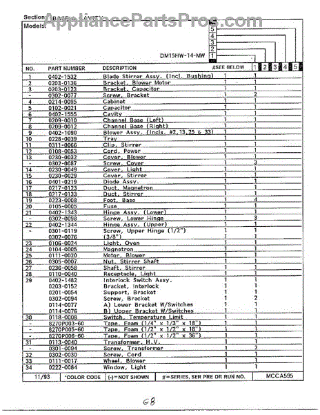 Parts for Magic Chef DM15H14TMW: Base And Cavity Page 2 Parts