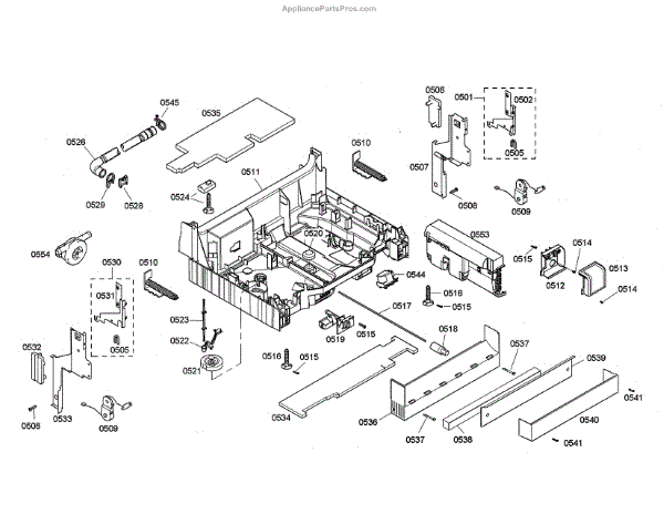 The Junction Box Cover is an OEM part for Bosch dishwashers. Located at the rear of the appliance, the junction box houses connections to the power supply and control board wiring. The junction box cover protects these internal electronic parts.