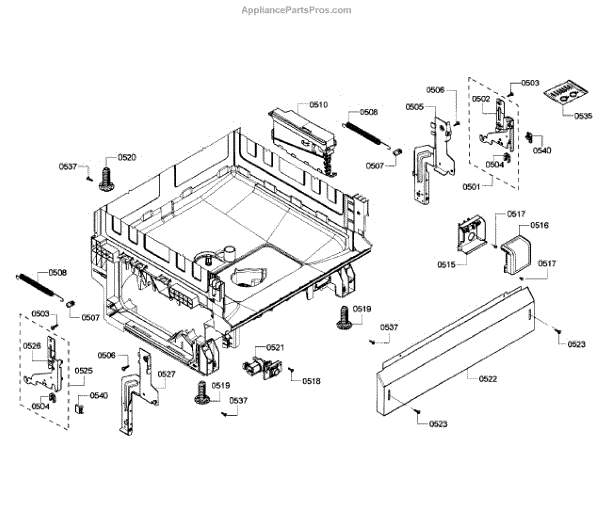 The Base Panel is an OEM part for Bosch dishwashers. It serves as a protective cover for the bottom of the dishwasher, shielding internal components from debris, moisture, and damage while also contributing to the appliance's structural stability.