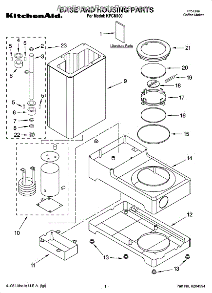 Parts for Kitchenaid KPCM100: 01 - Base And Housing Parts