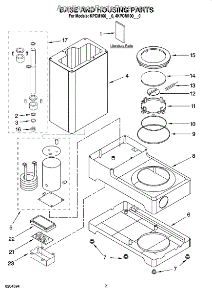 Parts for Kitchenaid KPCM100NP0: 01 - Base And Housing Parts