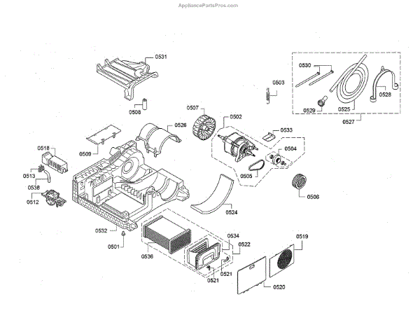 This part is a dryer motor assembly. It is located on the back of the appliance. The part is responsible for turning the dryer blower and drum. Make sure the dryer is free of lint and regularly clean the dryer vents to keep the motor assembly in good shape. If the motor assembly is damaged or malfunctioning, it may cause the dryer to hum. The dryer may also have difficulty spinning.If the motor assembly has gone bad, it should be replaced. Unplug the dryer and consider work gloves to protect the hands. Remove the lint screen and housing, the lid, and the wire harness plug. Take off the front panel and unhook it from the hinges. Remove the pulley and belt to reach the drive motor. Take out the clamps and pull the motor assembly out. Place the new one in the same location and reassemble the dryer.Designed for dryers manufactured by Bosch, this motor assembly is sold individually. It is a genuine OEM replacement part that has been directly obtained from the manufacturer.
