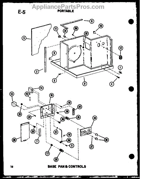 Parts for Amana ES6P-2SPMN/P54972-34R: Base Pan & Controls Parts