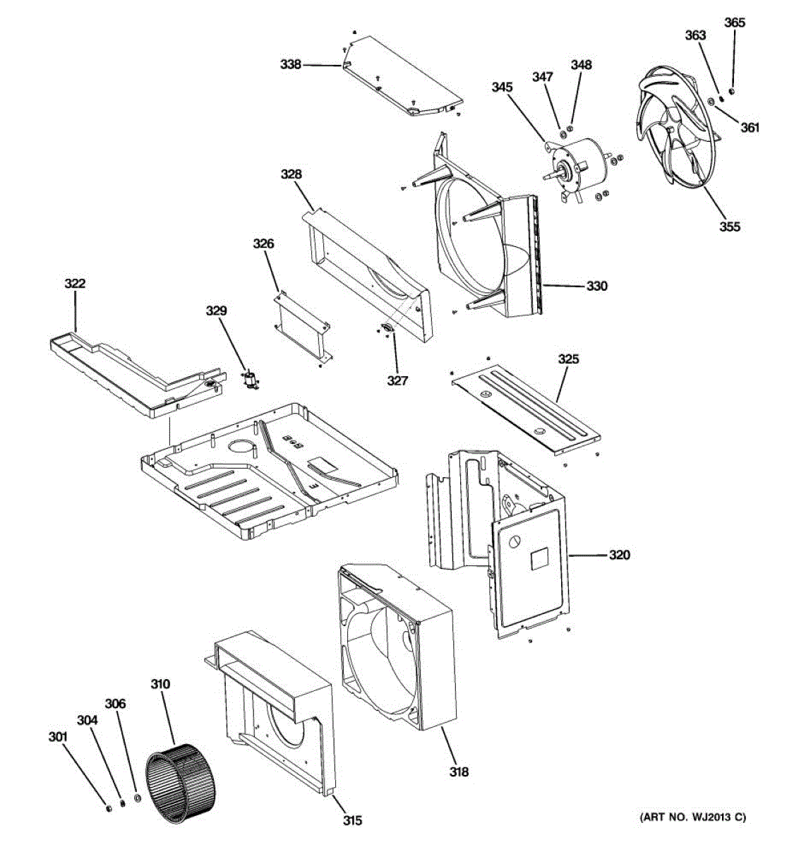 Propeller housing for room air conditioners. Covers and protects the fan propeller assembly. Replace if cracked, broken, or missing for proper operation.