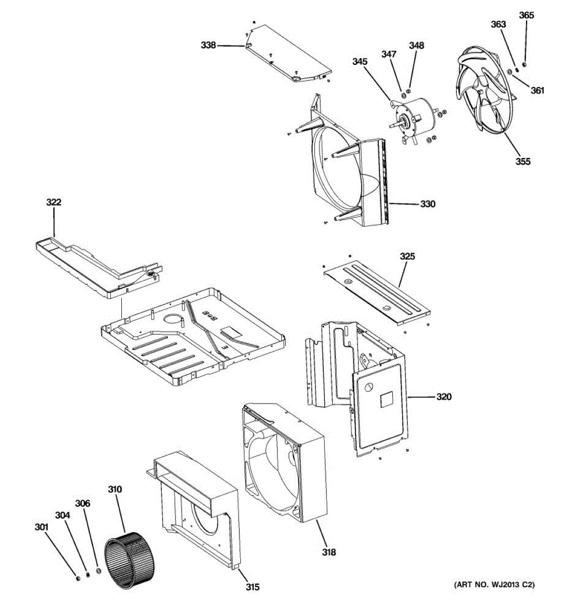 Propeller housing for room air conditioners. Covers and protects the fan propeller assembly. Replace if cracked, broken, or missing for proper operation.