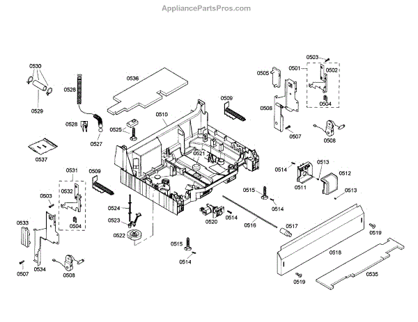 The Base Panel is an OEM part for Bosch dishwashers. It serves as a protective cover for the bottom of the dishwasher, shielding internal components from debris, moisture, and damage while also contributing to the appliance's structural stability.