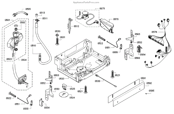 The Power Cord is an OEM replacement part for Bosch dishwashers. It supplies electrical current that allows the dishwasher to properly perform cycles. Located at the rear of the appliance, it plugs into a standard three-prong outlet. Causes for power cord replacement include cracking, splitting, or breaks in the protective insulation over time from repeated bending and stress. Symptoms of a faulty power cord include:
