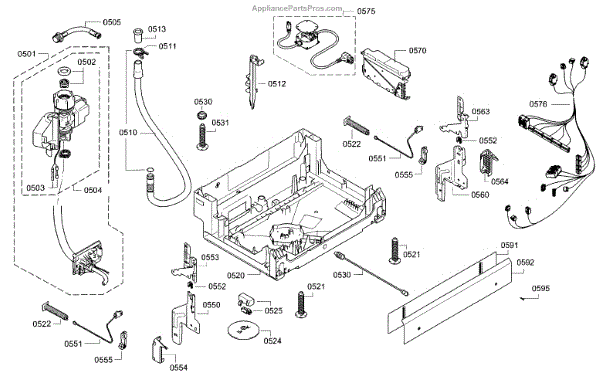 The Power Cord is an OEM replacement part for Bosch dishwashers. It supplies electrical current that allows the dishwasher to properly perform cycles. Located at the rear of the appliance, it plugs into a standard three-prong outlet. Causes for power cord replacement include cracking, splitting, or breaks in the protective insulation over time from repeated bending and stress. Symptoms of a faulty power cord include: