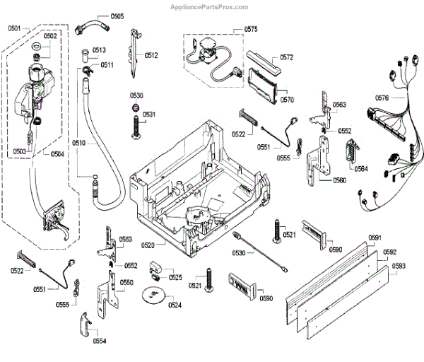 The Adapter is an OEM part for Bosch dishwashers. It is used to connect the dishwasher water inlet hose to the internal water supply component. Proper sealing and connections are critical for leak-free dishwasher operation. Causes of a bad hose adapter can include mineral buildup interfering with the seal, cracks developing from repeated heating and cooling cycles, or accidental damage during hose handling. Symptoms of a bad hose adapter include: