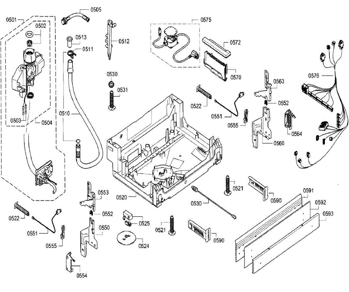 Dishwasher bottom case base assembly forms the lower enclosure protecting internal components. Replace if cracked, broken, or damaged to restore stability.