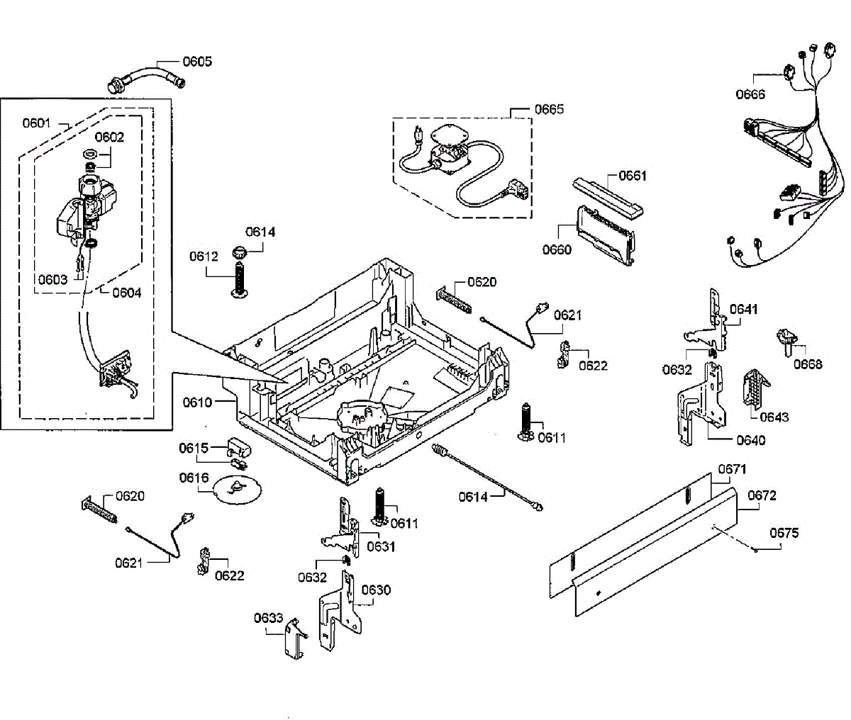 Dishwasher bottom case base assembly forms the lower enclosure protecting internal components. Replace if cracked, broken, or damaged to restore stability.