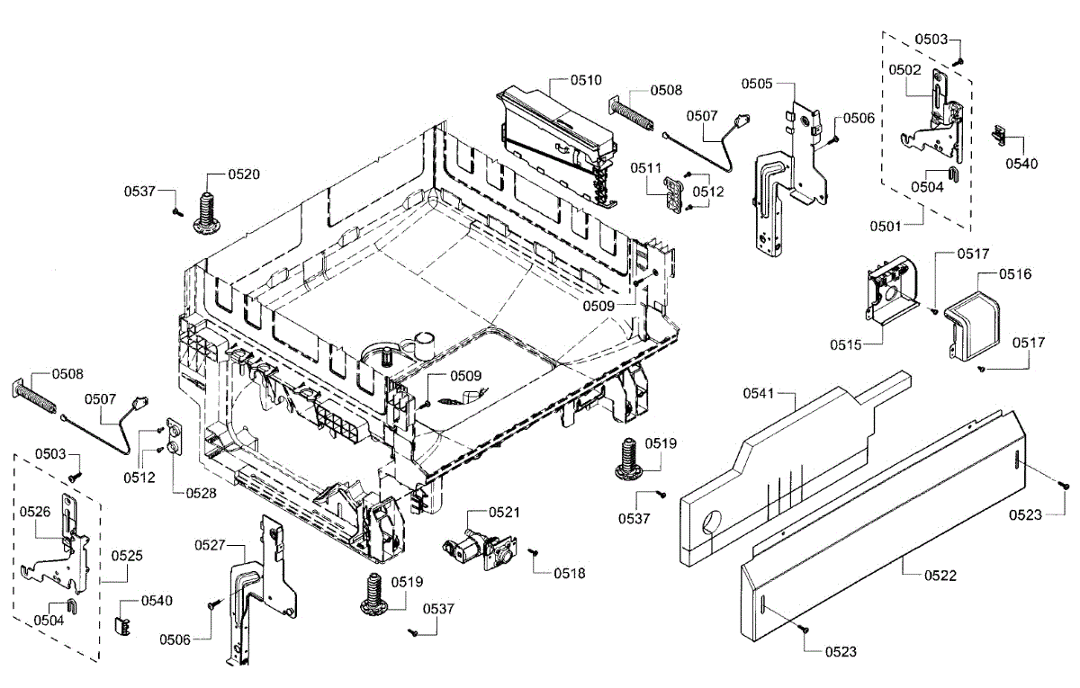 The Support is an OEM part for Bosch dishwashers. This part supports the door hinges, ensuring that the dishwasher door opens and closes smoothly and securely. The hinge support is vital for maintaining the alignment of the door, preventing stress on other components, and ensuring a proper seal during operation to avoid leaks.
