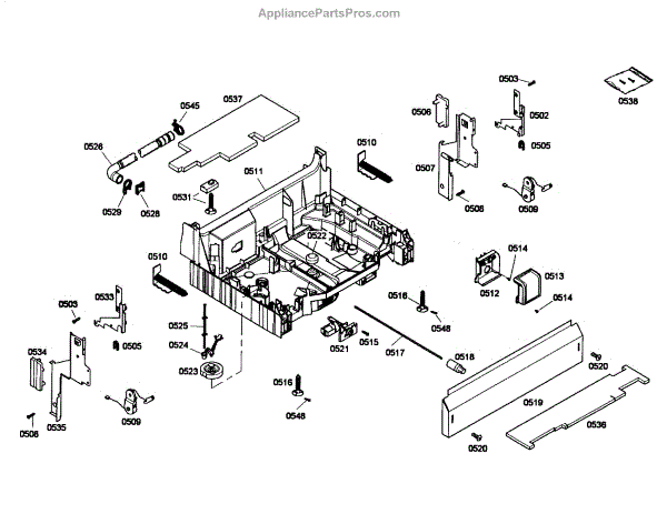 The Base Panel is an OEM part for Bosch dishwashers. It serves as a protective cover for the bottom of the dishwasher, shielding internal components from debris, moisture, and damage while also contributing to the appliance's structural stability.