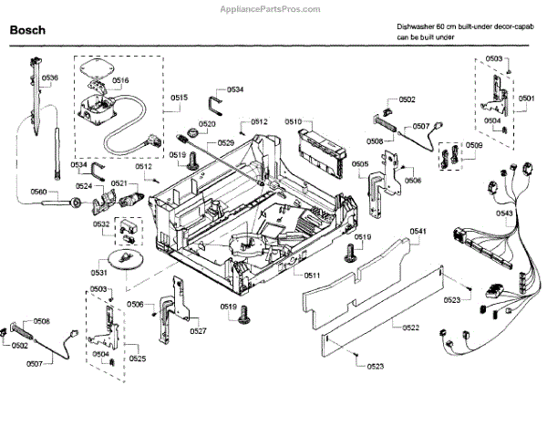 The Power Cord is an OEM replacement part for Bosch dishwashers. It supplies electrical current that allows the dishwasher to properly perform cycles. Located at the rear of the appliance, it plugs into a standard three-prong outlet. Causes for power cord replacement include cracking, splitting, or breaks in the protective insulation over time from repeated bending and stress. Symptoms of a faulty power cord include:
