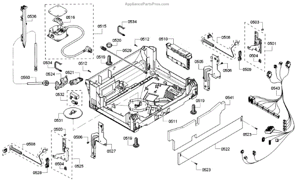 The Base Panel is an OEM part for Bosch dishwashers. It forms the floor structure inside the dishwasher tub on which racks and components sit. Symptoms of a problematic base panel include: