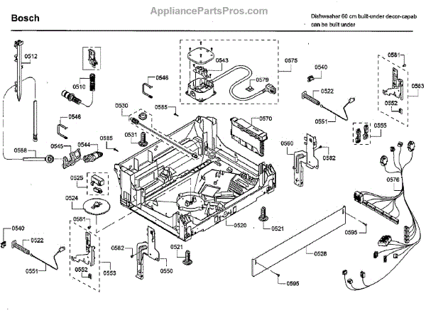 The Base Panel is an OEM part for Bosch dishwashers. It forms the floor structure inside the dishwasher tub on which racks and components sit. Symptoms of a problematic base panel include: